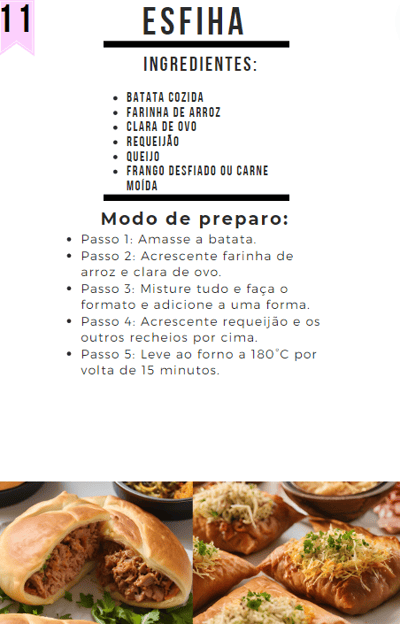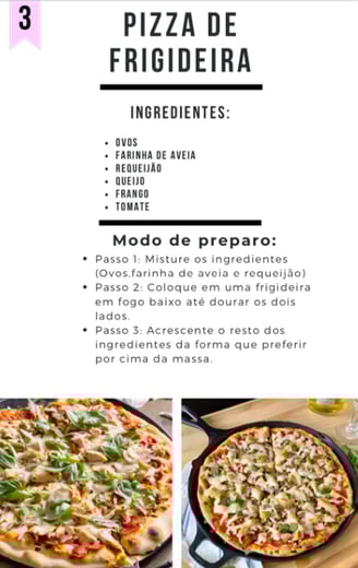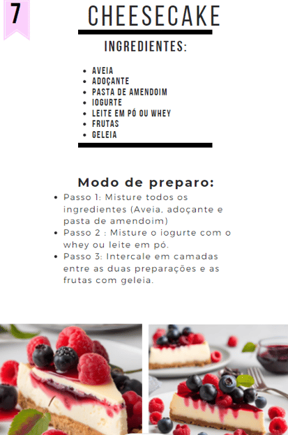Você terá acesso a mais de 50 receitas saudáveis e práticas, divididas em categorias como café da manhã, almoço, jantar e lanches.